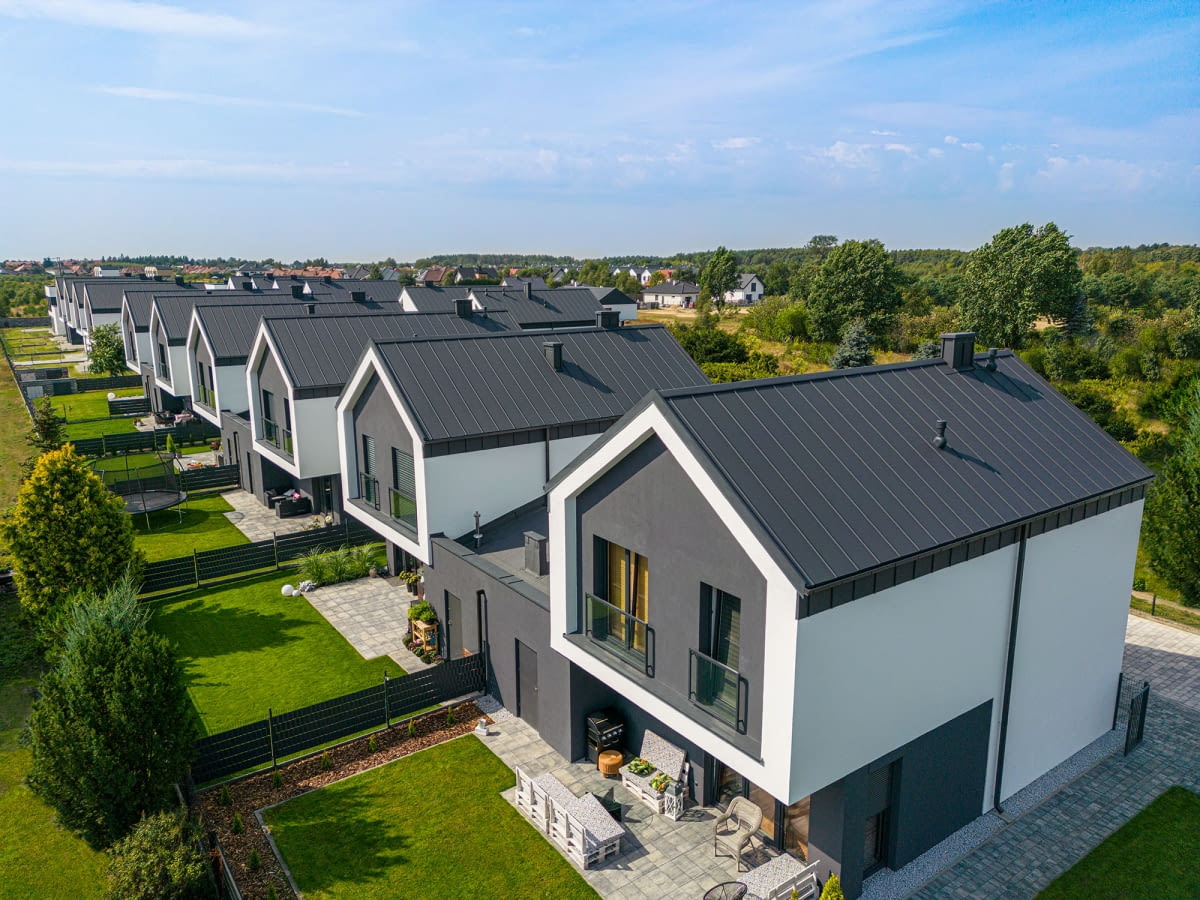 Aktualnie panele dachowe na rąbek stojący trendują na dużych oraz stromych projektach. To właśnie w przypadku takich aranżacji, uda się nam wydobyć pełnię geometrycznego oraz optycznego potencjału paneli.