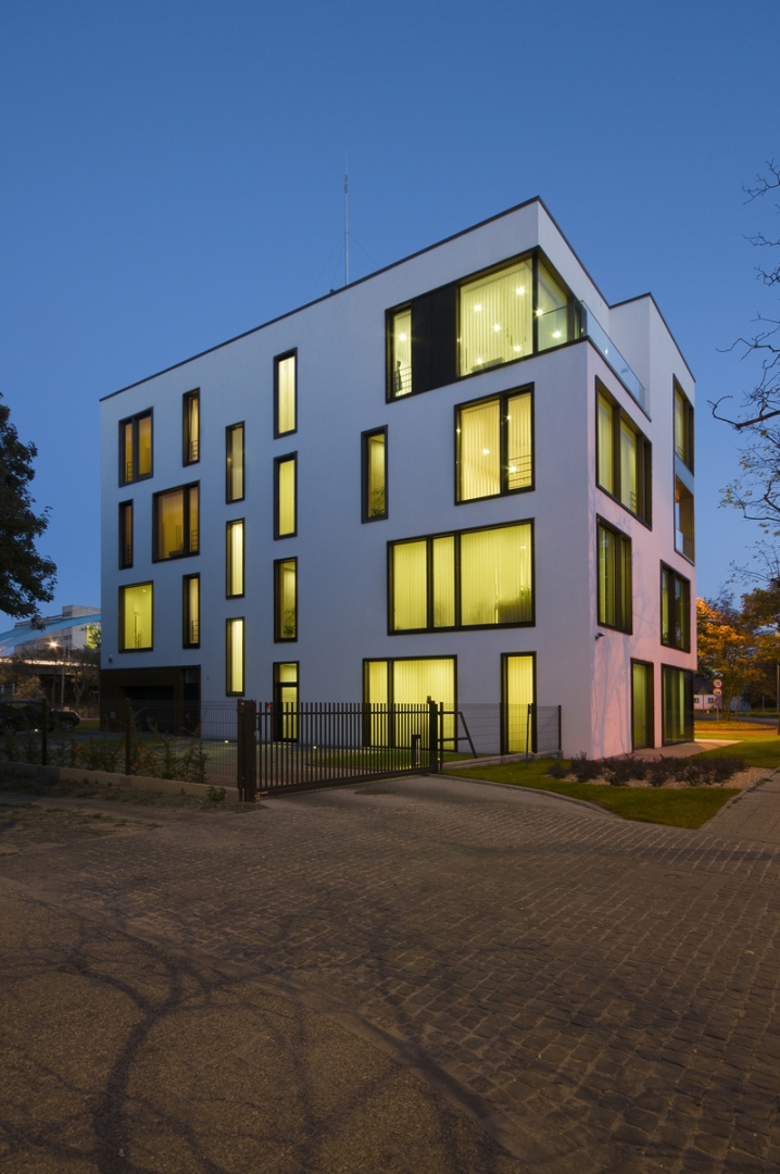 Nowa siedziba pilotów posiada zbliżone gabaryty i charakter do zabudowy sąsiedniej. Budynek uzupełnił zabudowę i idealnie wpisał się w towarzystwo starszych niemal o sto lat gmachów. Prosta, biała bryła, duże tafle szkleń porozrzucane na elewacji oraz detal w postaci miedzianych obramowań okien tworzą harmonijną całość. Architekci zadbali tutaj o najdrobniejsze szczegóły.