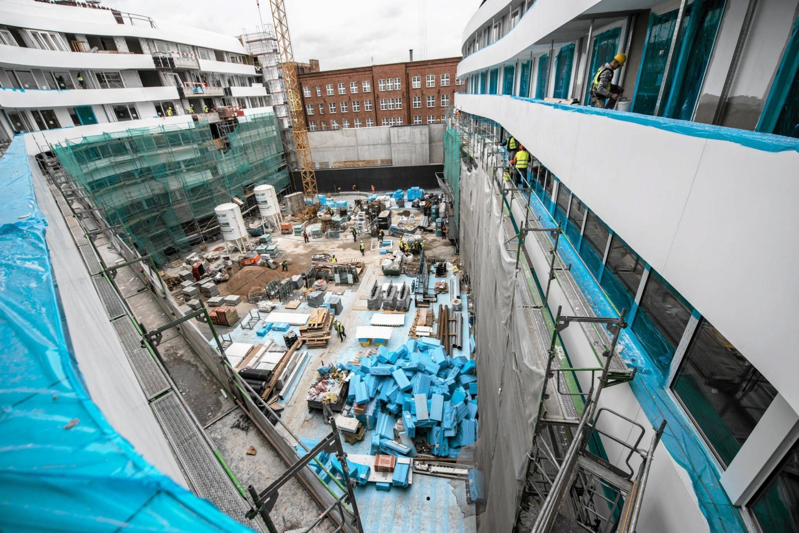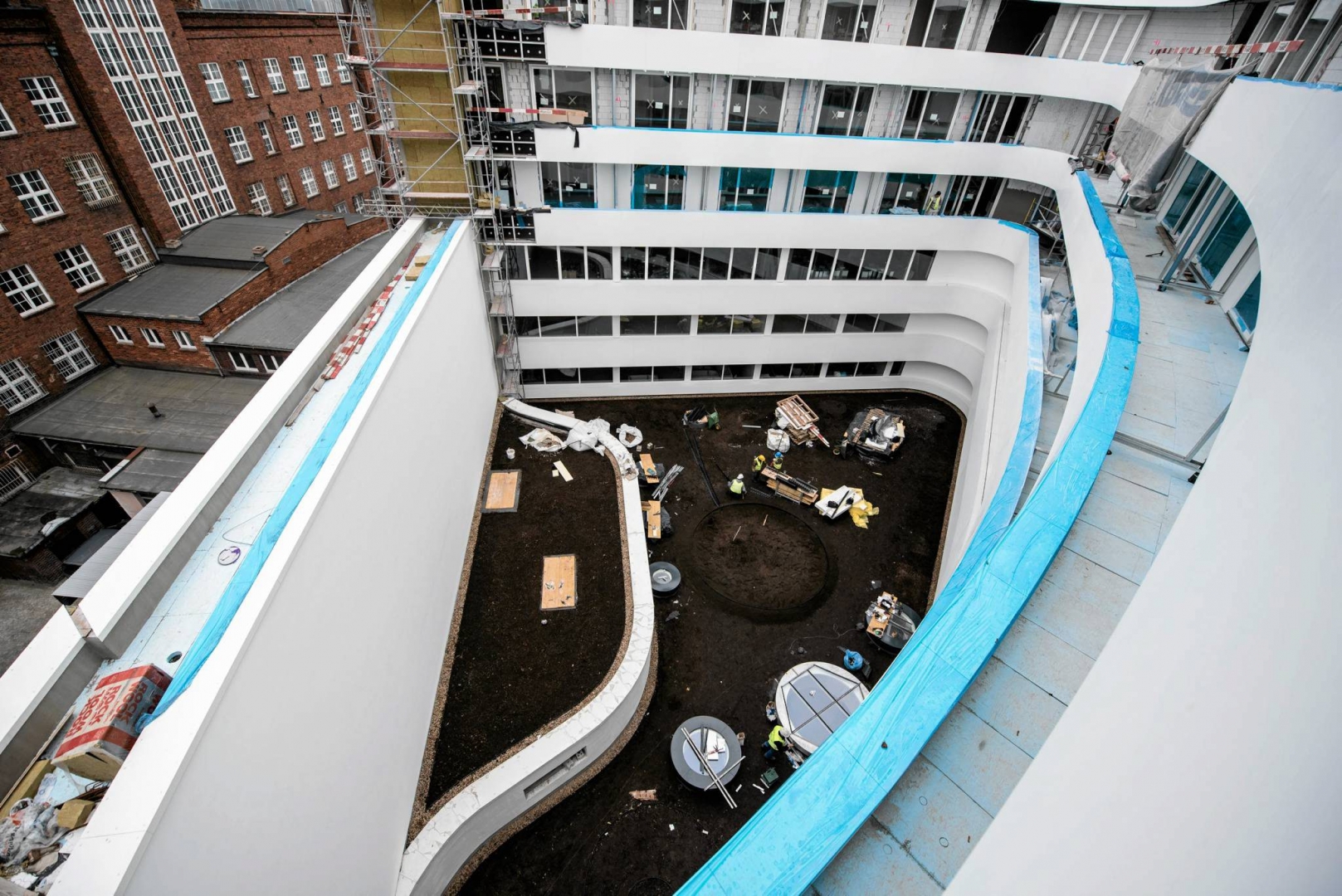 Budowa Ovo Wrocław ma zakończyć się na wiosnę przyszłego roku. W budynku powstaną zarówno małe mieszkania, jak i luksusowe penthousy z 250. metrowym tarasem. Poza funkcją mieszkalną w budynku znajdą się też usługi, biura oraz pięciogwiazdkowy hotel. Jak przebiega budowa i jakie są postępy prac na chwilę obecną? Zobacz zdjęcia w naszej galerii z placu budowy.