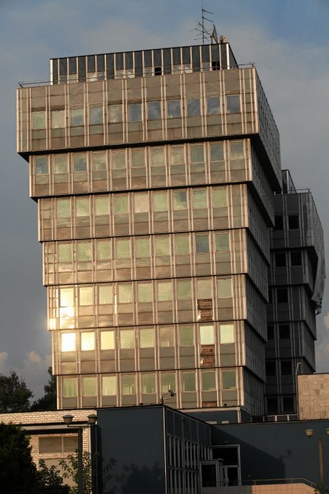 Budynek mieścił drugą siedzibę państwowego koncernu chemicznego (pierwszą CIECh miał w biurowcu przy Jasnej utrzymanym w stylu szlachetnej socmoderny). Ten u zbiegu Powązkowskiej i Elbląskiej miał z nim kontrastować tak mocno, jak tylko się dało. Postawiono na nowatorską wizję czechosłowackich projektantów, którzy wcześniej zbudowali analogiczny budynek. Projekt pochodził z końca lat 60., ale budowa zaczęła się w następnej dekadzie. Gmach stawiano w niezwykły sposób - najpierw wyrósł jego rdzeń, na który od góry nawlekano kolejne kondygnacje. Konstruktorzy boleśnie zderzyli się z permanentnymi w tamtym czasie "przejściowymi brakami w zaopatrzeniu", a "pałac CIECh-u" budowano w niezwykłym, jak na owe czasy, standardzie. Miał marmurowe ściany, oczka wodne, oranżerie, lustra, automatyczne drzwi... Budowa ciągnęła się prawie 20 lat, ukończono ją dopiero na początku lat 90. I wtedy okazało się, że budynek jest niefunkcjonalny - biura są za małe w stosunku do jego kubatury, a jakość aluminiowej stolarki okiennej i innych materiałów wykończeniowych była rozpaczliwa. W efekcie urzędnicy CIECh-u pracowali w swojej siedzibie tylko 17 lat, czyli krócej, niż trwała jej budowa. Dwa lata temu przeprowadzili się do biurowca przy Puławskiej, a pod koniec zeszłego roku sprzedali piramidę na Powązkach. Za niespełna 24 mln zł kupiła ją firma deweloperska Marvipol. To ona burzy teraz biurowiec.