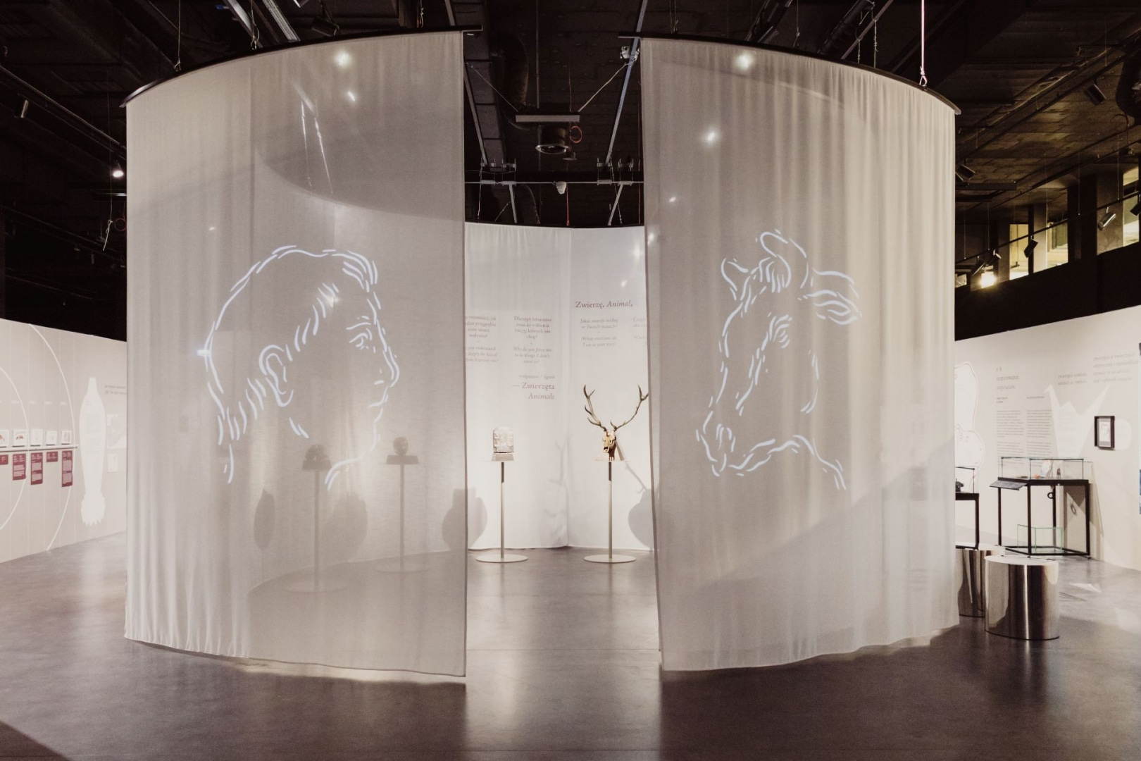 Z kolei przy scenografii wystaw czasowych możemy pozwolić sobie na większą swobodę. Częściej pojawiają się tam rozwiązania bardziej eksperymentalne, mniej trwałe materiały czy odważniejsze gesty projektowe. Ta efemeryczność daje więcej możliwości i przestrzeni na coś zaskakującego.