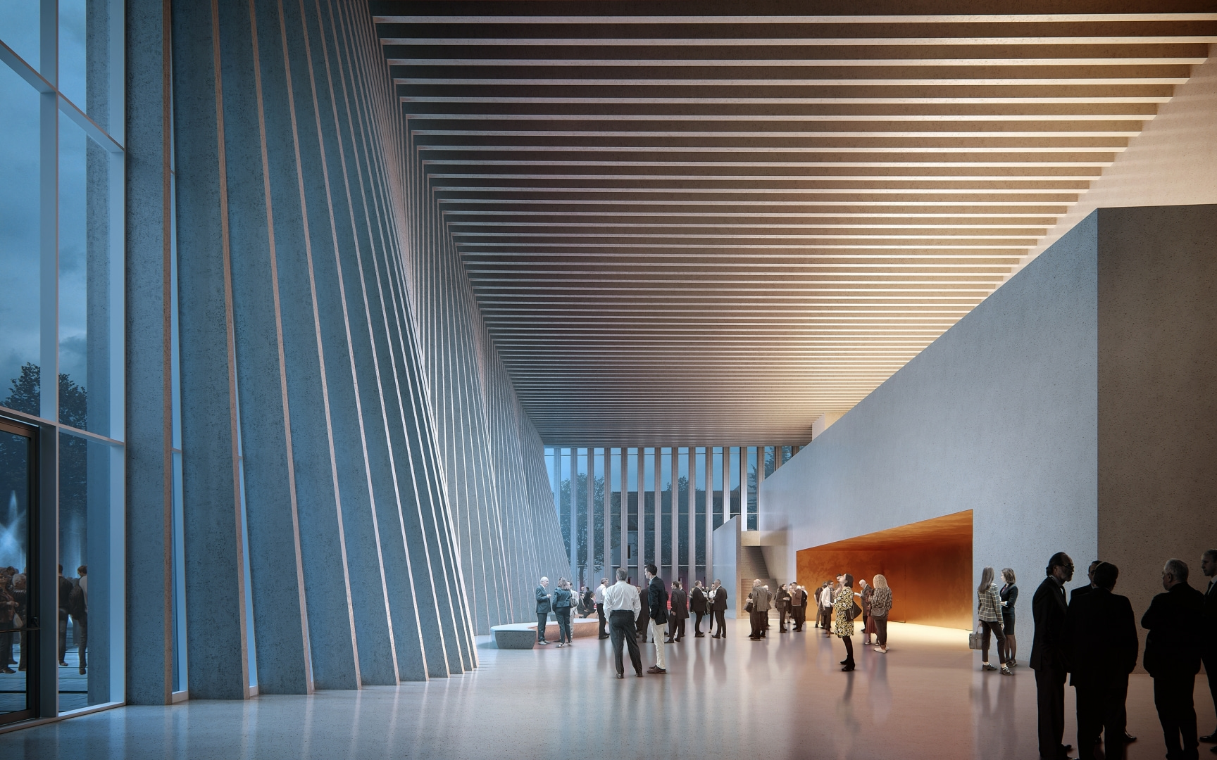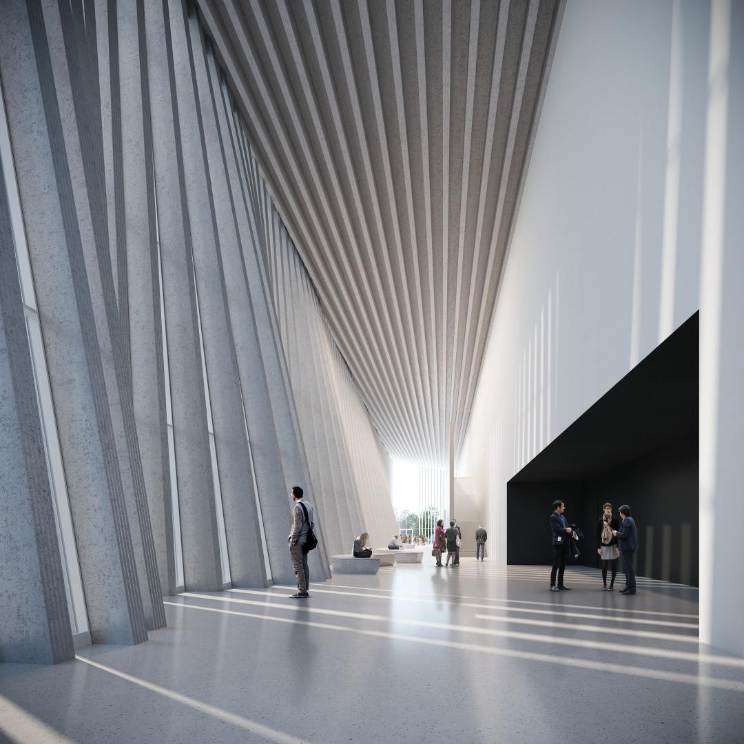 Filharmonia według projektu plus3-architekci to przemyślana sekwencja wrażeń. Przestrzeń wokół budynku ma nastroić zmysły słuchacza. Zaintrygowany wkracza w tętniący życiem plac, by po chwili odnaleźć spokój w zieleni parku. W foyer wycisza się - to ostatni etap przygotowań, w których architektura pełni w rolę impresaria. Kiedy gasną światła, przestrzeń milknie, ustępując miejsca temu, co najważniejsze: muzyce!