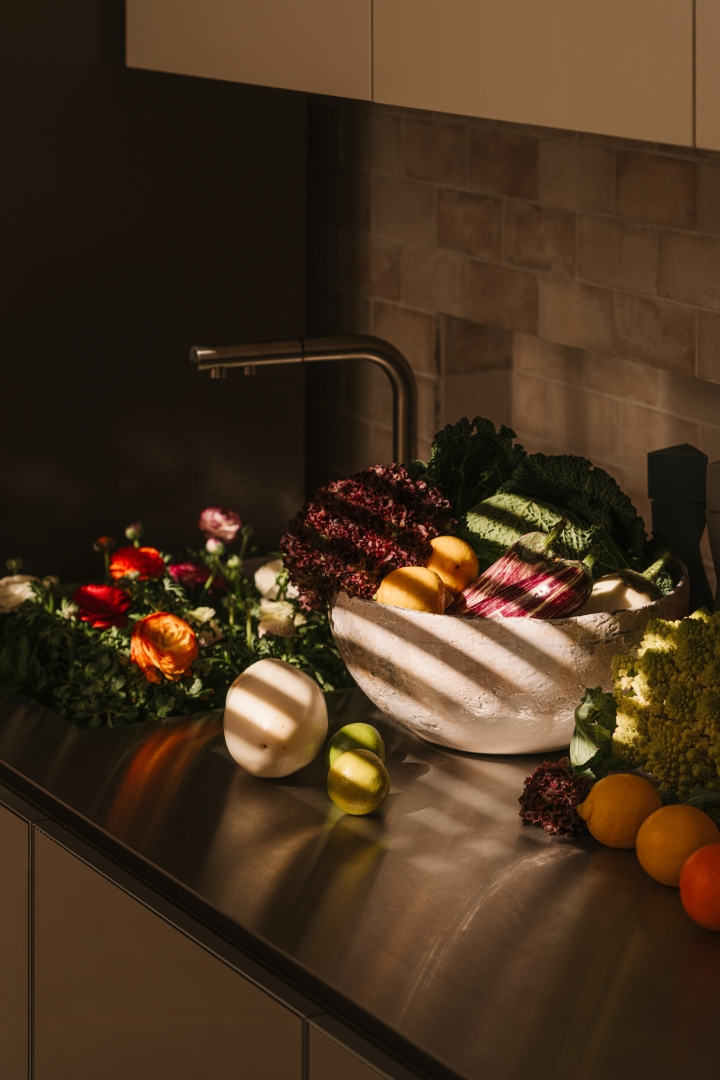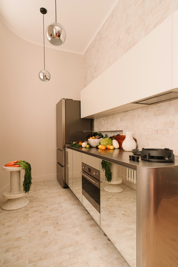 „Kuchnia miała być minimalistyczna, ale pełna światła. Lustro i stal odbijają przestrzeń, dzięki czemu wnętrze wydaje się większe, a jednocześnie nabiera charakteru”- podkreśla Hanna.