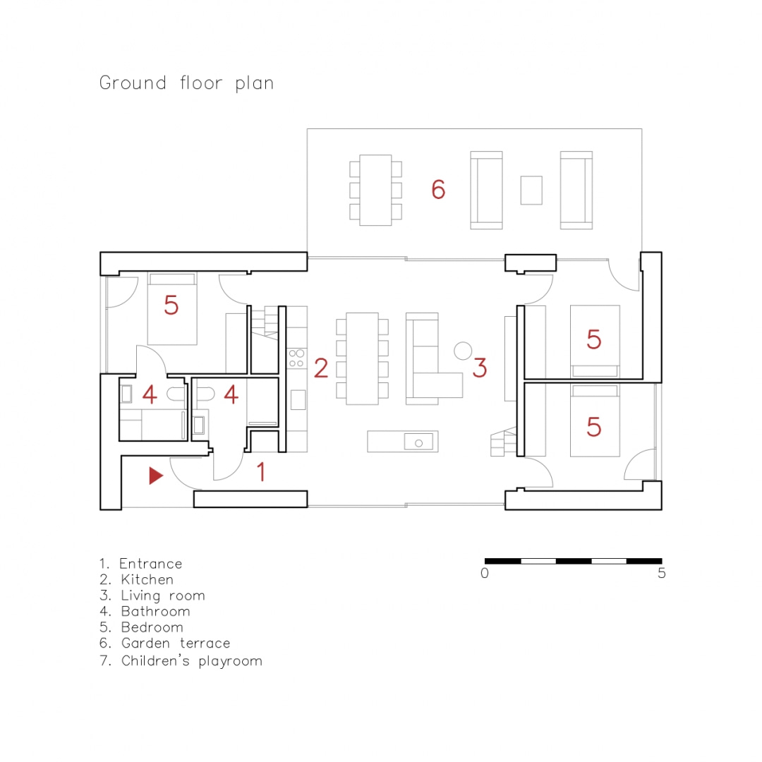 – Najważniejsze było dla nas nadanie możliwie najlepszej formy jasno określonej funkcji. Chodziło o stworzenie miejsca, które stanie się ulubioną przestrzenią spędzania wolnego czasu dla rodzin z dziećmi oraz odwiedzających ich gości. Kluczowa w projekcie jest otaczająca natura. Aby rozmyć granicę między budynkiem a otoczeniem zastosowaliśmy m.in. wielkoformatowe przeszklenia, które otwierają dom na krajobraz.