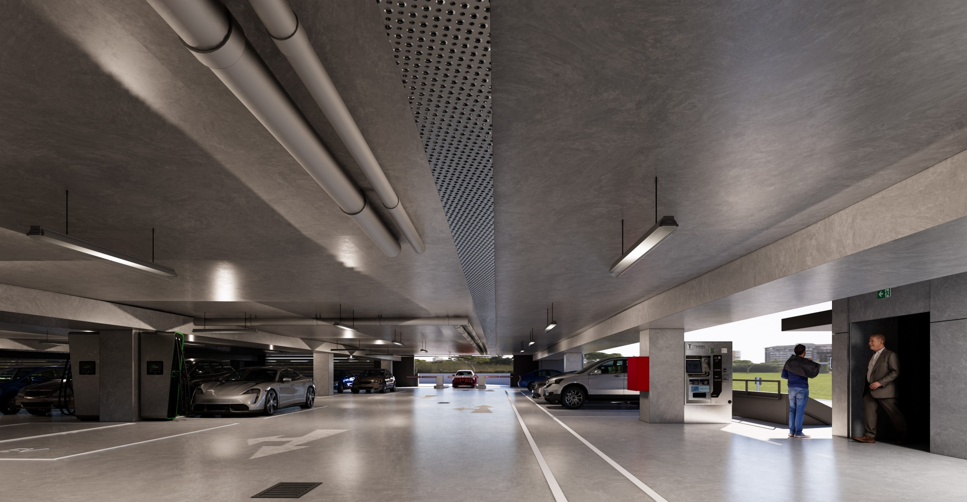 Projekt wpisuje się we współczesne standardy zrównoważonego budownictwa. Obiekt zostanie wyposażony w instalację fotowoltaiczną, stacje ładowania pojazdów elektrycznych oraz zadaszony parking rowerowy typu Bike&Ride. Zieleń zaplanowano nie tylko na dachu. Roślinność ma pojawić się również na elewacjach, ekranach akustycznych oraz ścianach oporowych.