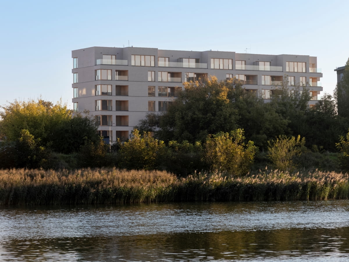Co ważne, architekci zadbali o to, by zaprojektowany budynek właściwie wpisywał się w otoczenie. Od północy mieszkaniówka sąsiaduje z dawną chłodnią z 1943 roku projektu Witolda Marcinkowskiego – monumentalnym przykładem przedwojennego modernizmu, wpisanym do ewidencji zabytków i przewidzianym do remontu.