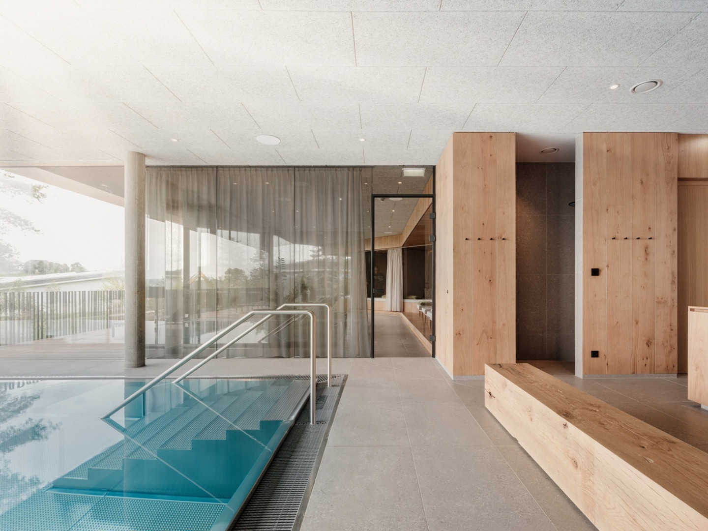 Uczestnicy biznesowych spotkań czy szkoleń w europejskim centrum innowacji i automatyki budynkowej Loxone Campus mogą więc wdrożyć w życie ideę workation i zostać na wypoczynek z rodziną. Do dyspozycji mają też m.in. wewnętrzny basen przechodzący w infinity z widokiem na zielony, równy park oraz wzgórza na horyzoncie oraz centrum odnowy biologicznej z eko saunami i salami fitness. W strefie wypoczynku można też zwyczajnie poleniuchować, wyciszyć się. Miejsca odpoczynku wyposażono w punktowe lampki, można więc relaksować się także z książką.