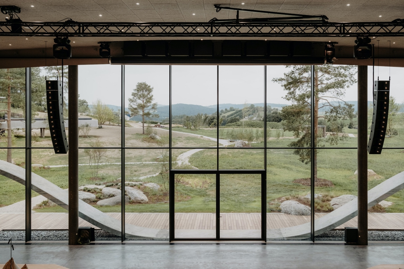 W Loxone Campus można więc zorganizować seminarium nawet na 600 osób, bo taką pojemność ma największe audytorium w kompleksie. Zadowolenie ze spotkania wynikać będzie nie tylko z merytoryki. Na dobre samopoczucie uczestników wpływa to co za oknem i to co w budynku. Przez cały czas trwania wykładów skupieniu i wyciszeniu pomaga widok za szklaną ścianą audytorium – kojąca zieleń drzew i wzgórz.