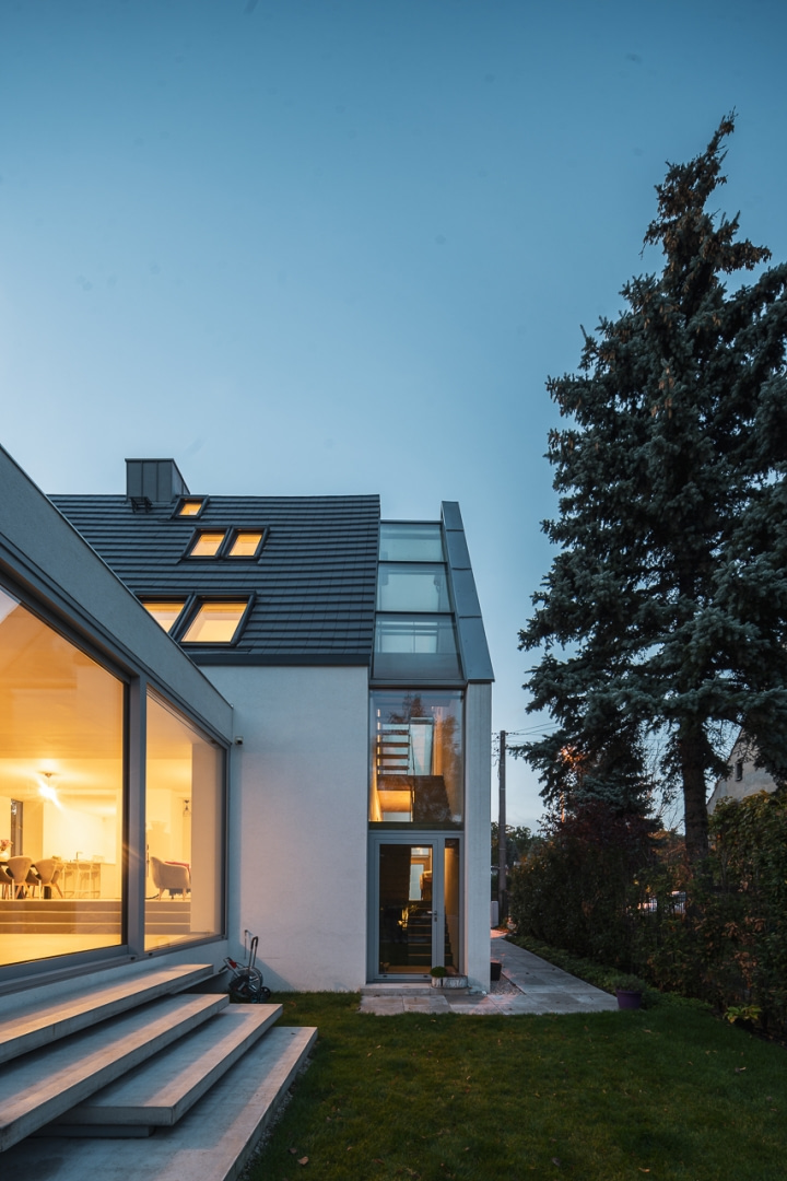 W jedynym z zabytkowych osiedli Wrocławia, architekci z pracowni PORT zrealizowali projekt przebudowy i rozbudowy domu jednorodzinnego. Stanowi on przykład świadomego dialogu między historią a współczesnością. Niewielki, niedoświetlony budynek zyskał nową jakość dzięki precyzyjnie zaprojektowanym interwencjom – od przekształcenia układu komunikacyjnego po wyrazistą, przeszkloną rozbudowę otwierającą wnętrza na ogród. Realizacja pokazuje, jak poprzez architekturę można wydobyć ukryty potencjał miejsca, zachowując jednocześnie szacunek dla jego kontekstu.