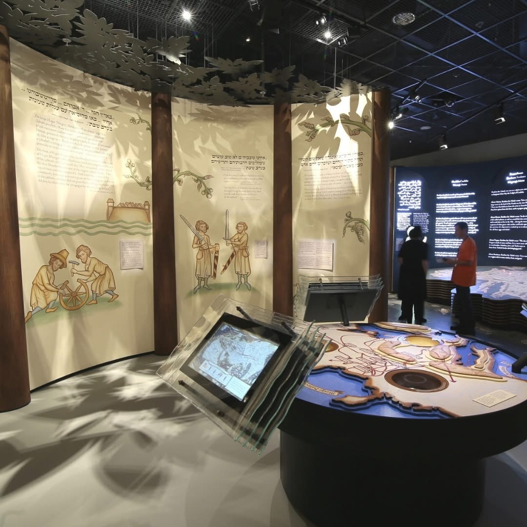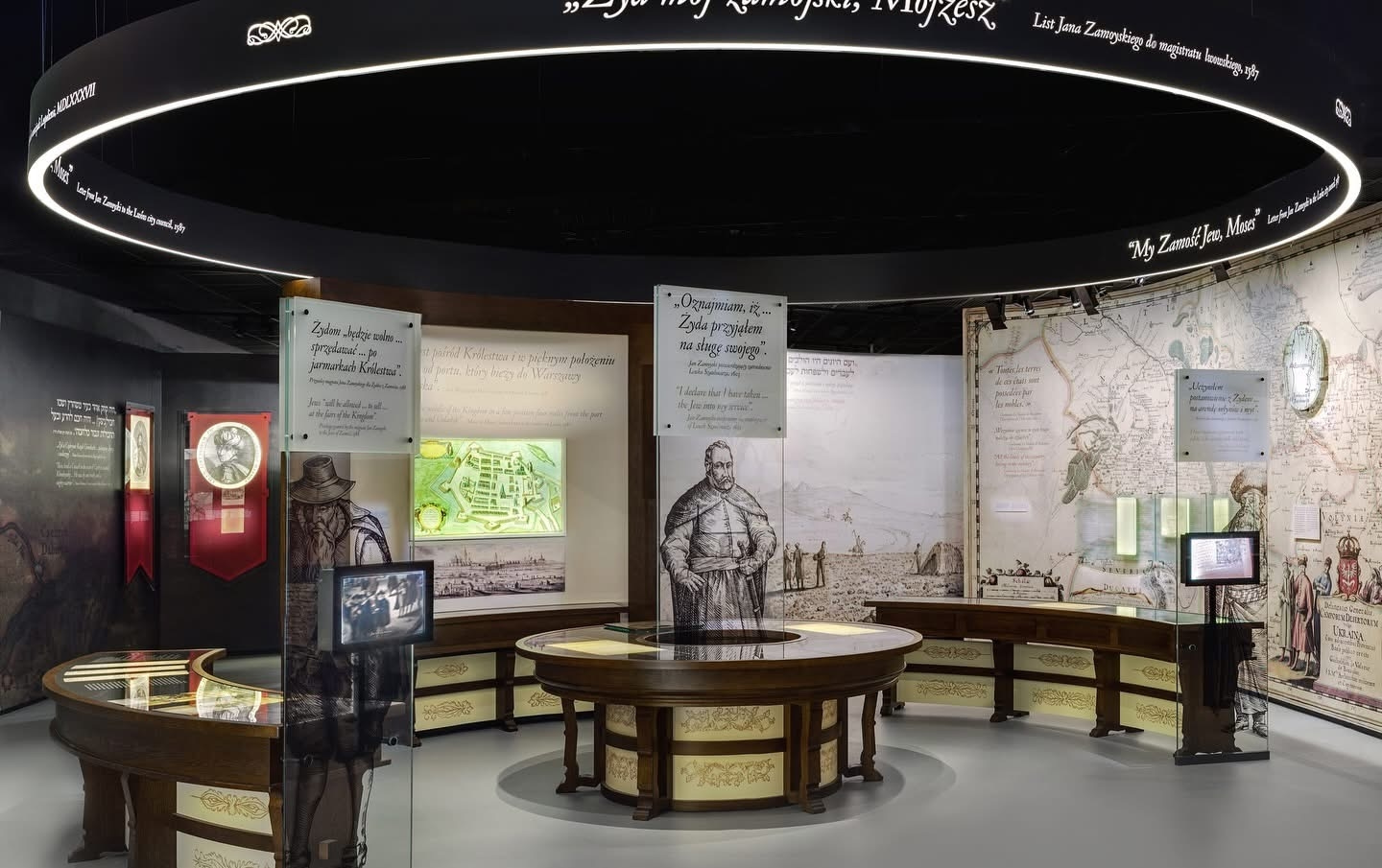 Specyfika narracji oraz niewielka liczba zachowanych zabytków wymagały od zespołu Nizio Design International tworzenia od podstaw form, przedmiotów i materiałów nawiązujących do tych sprzed stuleci. W efekcie powstała ekspozycja, w której duża część elementów to unikatowe prototypy, nigdy wcześniej niewykorzystywane w tego typu realizacjach muzealnych. Wystawa bazuje na pasywnych i aktywnych stanowiskach multimedialnych, specjalnie zaprojektowanych meblach, malowidłach, elementach dekoracyjnych oraz oryginalnych obiektach zabytkowych. Scenografia zaproponowana przez architektów układa się w autonomiczną, wielowarstwową opowieść, w której każdy detal, od rekonstrukcji wnętrz synagog po interaktywne instalacje, podporządkowany jest spójnej narracji historycznej.