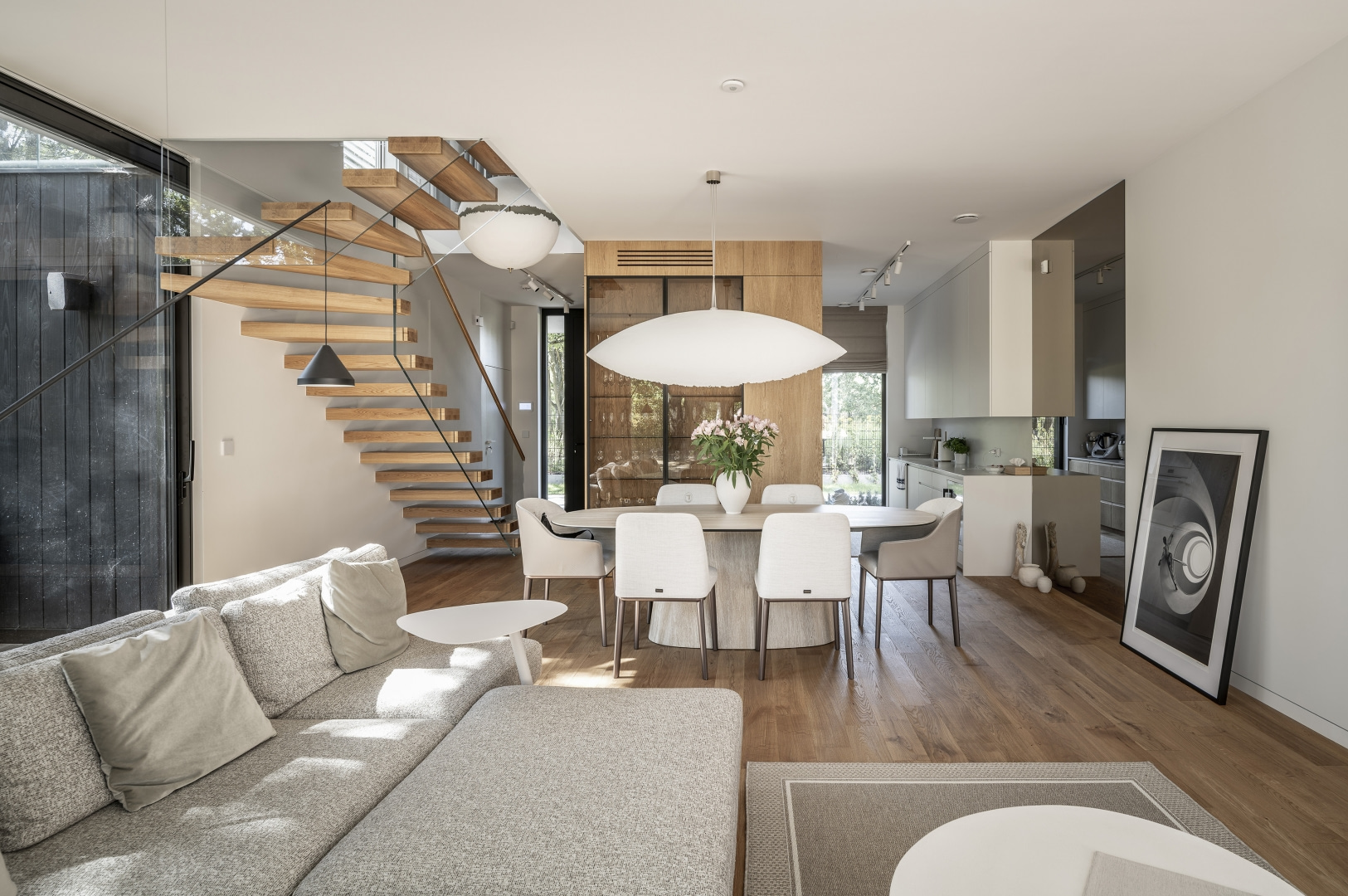 Projekt Natura Konstancin wyróżniają również zaawansowane rozwiązania technologiczne i detal architektoniczny: aluminiowe okna slimline o wysokości do 290 cm, automatyczne żaluzje fasadowe Aluprof, zintegrowane z elewacją markizy ogrodowe, system Smart Home LOXONE oraz elektroniczne zamki sterowane smartfonem.