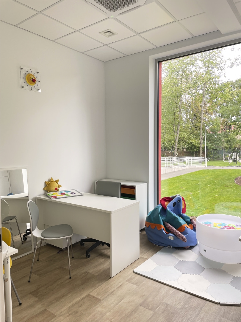 - Większa bryła mieści sale specjalistyczne oraz toalety dla dzieci.