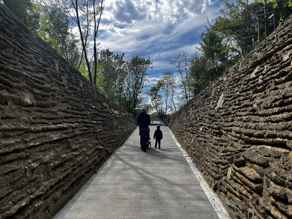 Kopiec Powstania Warszawskiego jest obiektem szczególnym: usypany z gruzów zniszczonej po 1944 roku Warszawy, sam w sobie stanowi materialny zapis katastrofy miasta. Projekt oddanego do użytku w 2023 roku Parku Akcji „Burza” nie próbuje tej historii maskować ani estetyzować, lecz świadomie ją eksponuje. Topografia kopca – stroma, nienaturalna, wyraźnie odcinająca się od otaczającego krajobrazu – staje się podstawowym narzędziem narracyjnym.