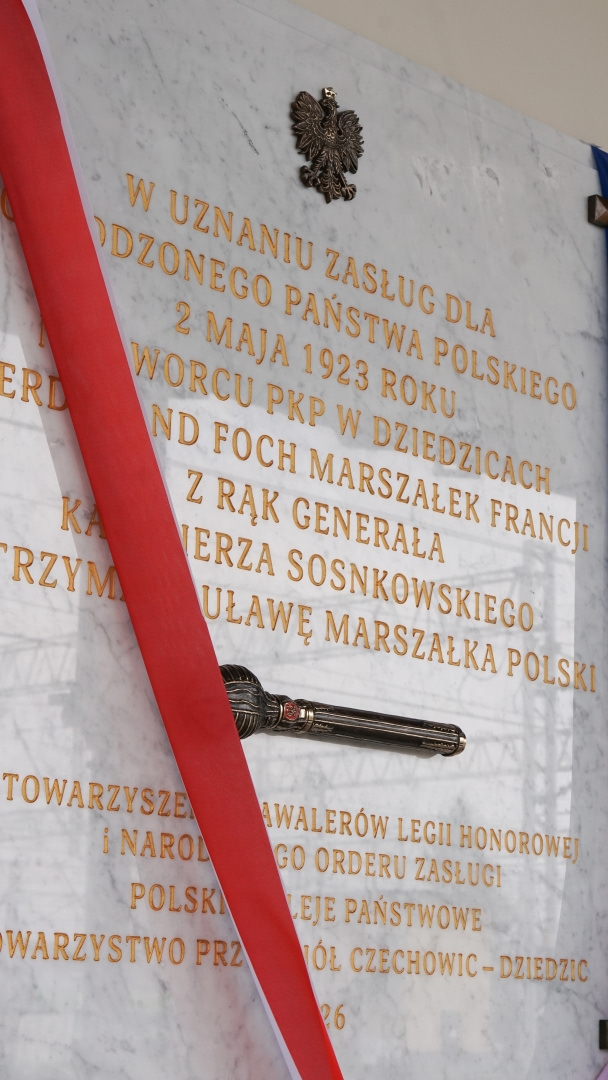 Podczas uroczystego udostępnienia budynku pasażerom odsłonięto tablicę upamiętniającą wydarzenie z 2 maja 1923 r., kiedy na dworcu w Czechowicach Ferdynand Foch, ważna postać w historii Polski, otrzymał z rąk Kazimierza Sosnkowskiego buławę Marszałka Polski. W odsłonięciu tablicy wzięli udział m.in. Paweł Lisiewicz – członek zarządu PKP S.A.; Etienne de Poncins – ambasador Francji w Polsce; Marek Wójcik – wojewoda śląski; Leszek Obracaj – Radny Powiatu w Bielsku-Białej; Marian Błachut – burmistrz Czechowice-Dziedzice; inicjator pamiątkowej tablicy – Andrzej Seweryn Mauberg, przewodniczący Stowarzyszenia Kawalerów Legii Honorowej i Narodowego Orderu Zasługi oraz Andrzej Roehrich – prezes Towarzystwa Przyjaciół Czechowic-Dziedzic.