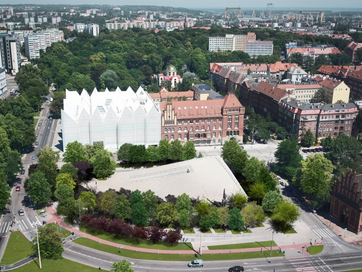 Centrum Dialogu Przełomy, autorstwa pracowni KWK Promes Roberta Koniecznego to dziś wizytówka Szczecina. Niedługo, na charakterystycznym placu pojawią się nowe nasadzenia, dodatkowe ławki a pod ziemią zostanie zainstalowany zbiornik retencyjny.
