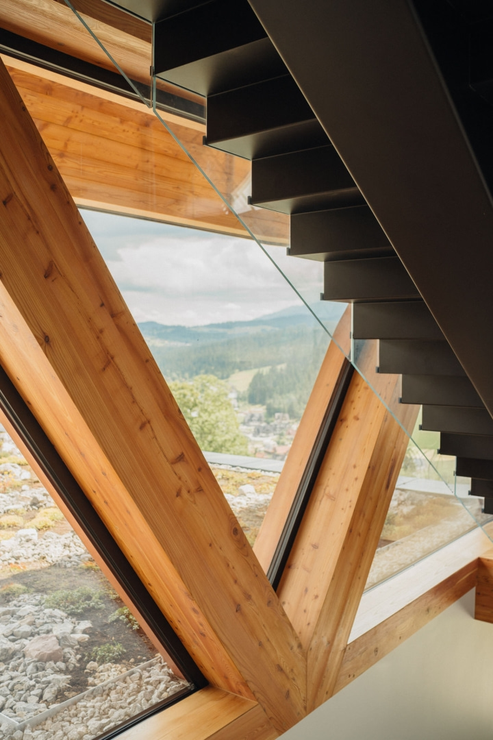 Inwestorami są osoby głęboko związane z górami – aktywni sportowcy, wspinacze, miłośnicy skiturów i podróży. Wspólne doświadczenia oraz podobna wrażliwość na przestrzeń pozwoliły szybko zbudować relację opartą na zaufaniu, która przełożyła się na dużą swobodę projektową. Od początku było jasne, że dom ma odpowiadać nie tylko na wymagania funkcjonalne, ale także na sposób życia mieszkańców – dynamiczny, bliski naturze i oparty na bezpośrednim kontakcie z krajobrazem.